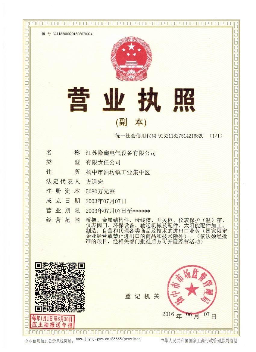 江蘇隆鑫電氣設(shè)備有限公司是集科研、設(shè)計、制造、安裝、技、工、貿(mào)一體化的專業(yè)生產(chǎn)型企業(yè),是工業(yè)管道閥門、儀表管閥配件、母線槽、匯線橋架、玻璃鋼制品的專業(yè)生產(chǎn)廠家。